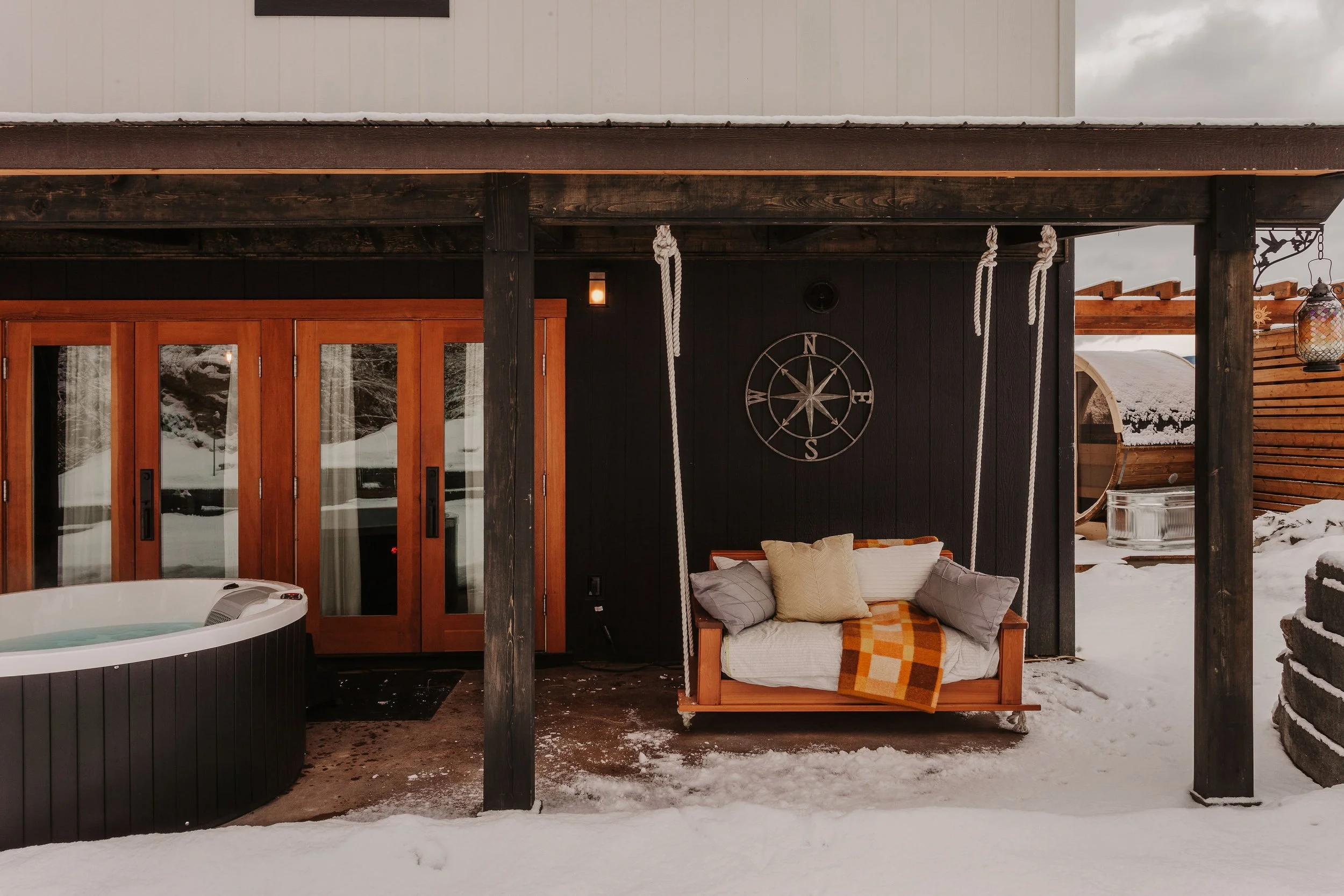 - Swing Chair & 2 Person Hot Tub: ease your day and relax into the true Nordic spa experience.