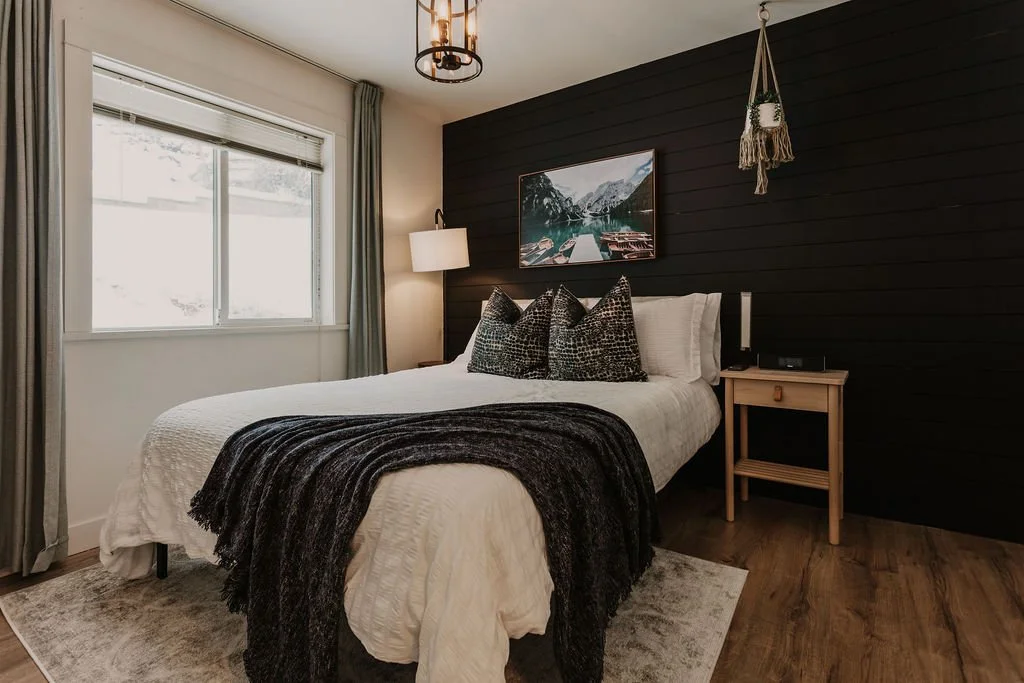 - Master Bedroom: offers a spacious King-sized bed with premium semi-firm memory foam mattress. 43" smart TV can be set up on the console table or hidden in the closet so you have an undisrupted lake and mountain view as you wake up!