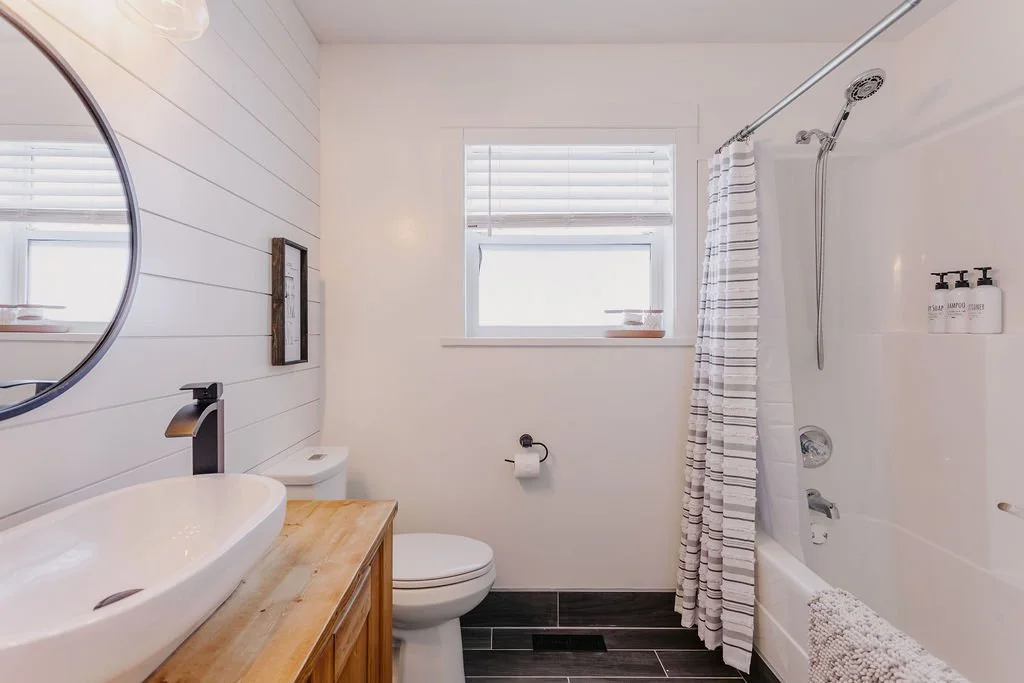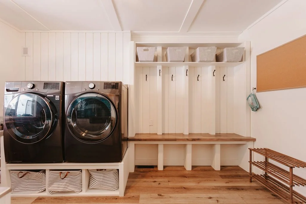 - Laundry & Mud Room: this spacious room offers tons of space for you to hang your coat, store your shoes and also has a sink vanity to clean. Complimentary use of washer & dryer on us! Options for non-scented Nellie's laundry soda, tide powder, and Oxi-Clean powder available.
