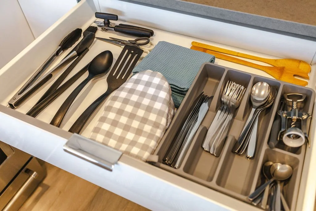 - Basic cooking essentials: salt & pepper, olive oil, sugar, coffee and tea
